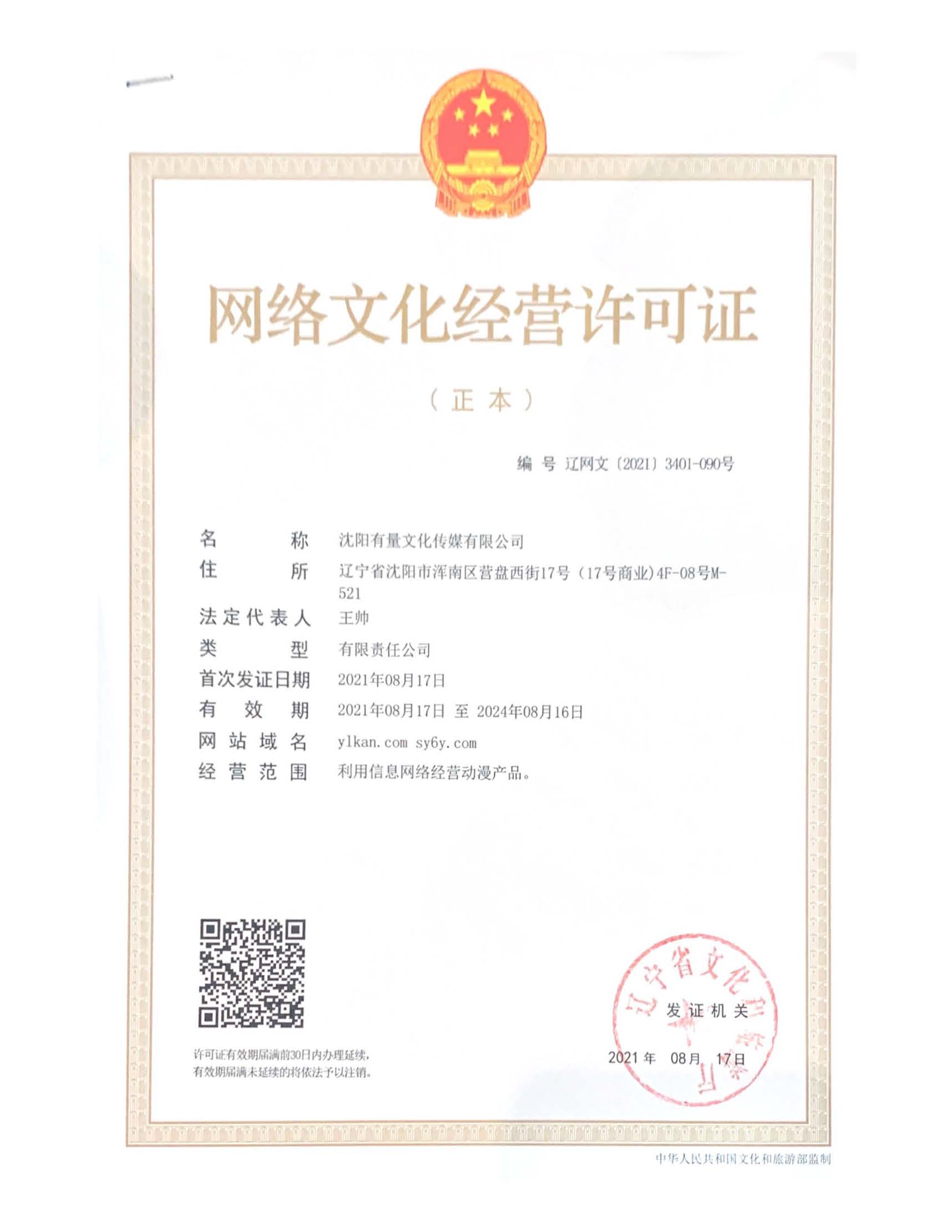 Copyright (C) 2022 沈陽有量文化傳媒有限公司 公司備案號:遼ICP備2021006768號-4 網絡文化經營許可證編號 遼網文(2024)3556-587號 營業執(zhí)照